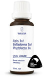 含有等量的蜜蜂萃取物 3x、顛茄萃取物 5x、商陸根萃取物 3x,溶於水乙醇基質中。